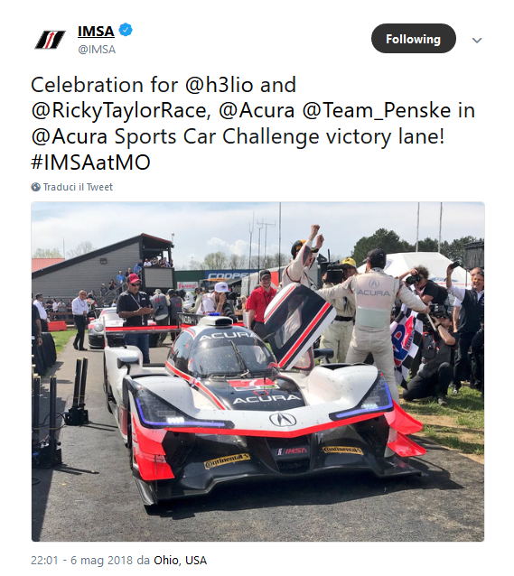 Stavolta la location era Mid-Ohio e il team Penske Acura ha ottenuto la prima doppietta, con la vittoria di Helio Castroneves e Ricky Taylor davanti alla vettura di Juan Pablo Montoya e Dane Cameron.